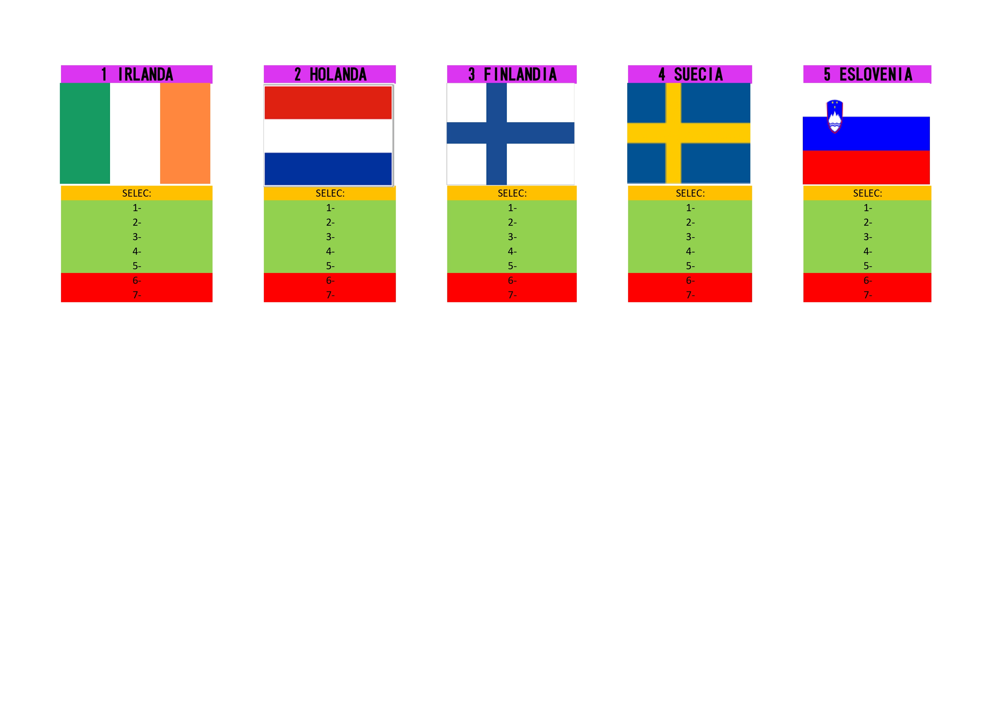 ![]() Equipos de Irlanda: 1- 2- 3- 4- 5- Suplentes: 6- 7- Seleccionador: Holanda ![]() Equipos de Holanda: 1- 2- 3- 4- 5- Suplentes: 6- 7- Seleccionador: Finlandia: ![]() Equipos Finlandia: 1- 2- 3- 4- 5- Suplentes: 6- 7- Seleccionador: Suecia: ![]() Equipos Suecia: 1- 2- 3- 4- 5- Suplentes: 6- 7- Seleccionador: Eslovenia: ![]() Equipos Eslovenia: 1- 2- 3- 4- 5- Suplentes: 6- 7- Seleccionador: ALEMANIA: ![]() Equipos Alemania: 1- 2- 3- 4- 5- Suplentes: 6- 7- Seleccionador: