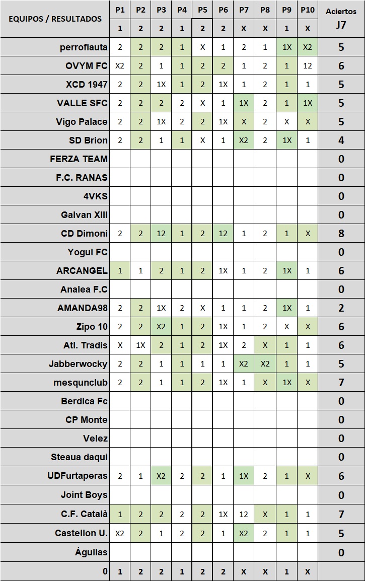 RESULTADOS JORNADA 7 QUINIELA (JORNADA 36 LIGA)